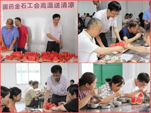 7月驕陽(yáng)似火,戶外氣浪灼人。為全力保障職工們的健康權(quán)益,把清涼送到一線,把關(guān)懷送到員工心坎,國(guó)藥金石工會(huì)攜手各總經(jīng)理辦公室、黨群辦公室,為員工撐起一把把夏日關(guān)愛(ài)的“遮陽(yáng)傘”。